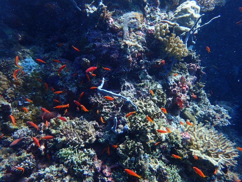 Scuba diving among palm trees and white sand